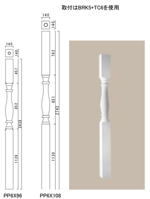 パラスターはアルミ、手摺と親柱はPVC、ポーチポストはスチールの芯材が入っています。