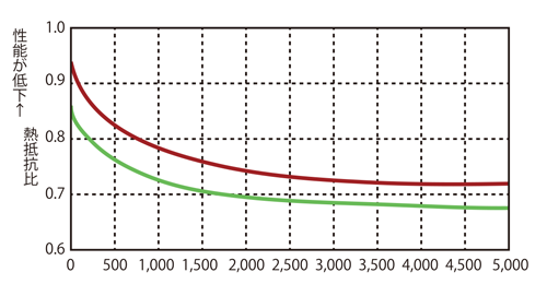 他社・発泡プラスチック系断熱材の断熱性能の経時変化