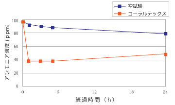 その後、1, 3, 5, 及び24時間経過後にテドラーバッグ内のアンモニア濃度を検知管で測定した。