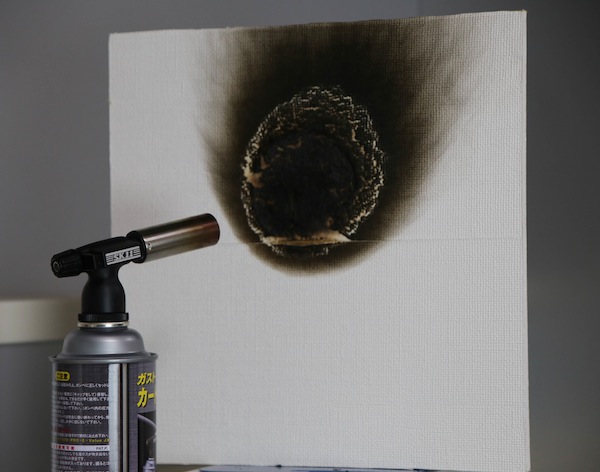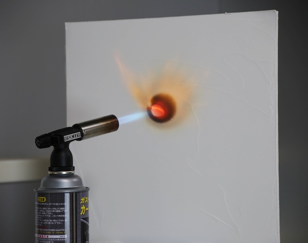 石膏ボードを使って最高温度1,700℃のバナーを当ててみました。