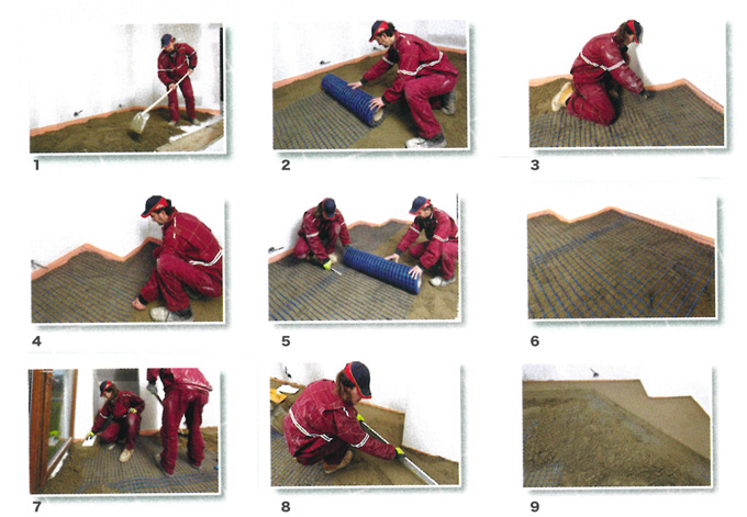 5-9) ;セルフレベリング材が適切な厚みとなるように整えます。