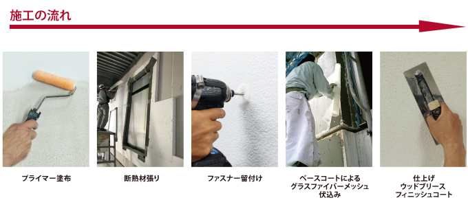 - 乾式外断熱工法と比べて廉価である。施工後のメンテナンスコストとともにコストパフォーマンスが良い。