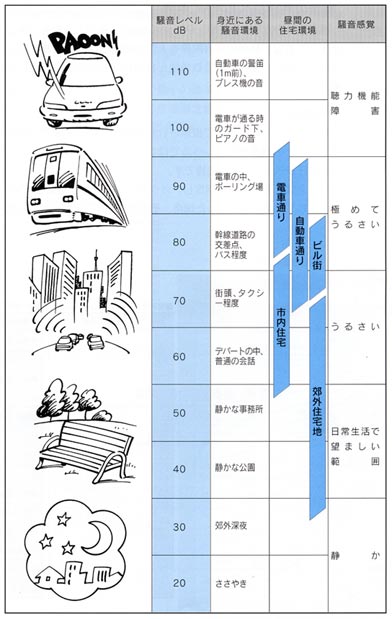 本データに基づく推定によると、外部より居室内に入射する騒音レベルのうち25m離れた盛土軌道を時速200㎞で走行する新幹線の騒音については、125~4kHzの周波数帯におけるA.Pで-40dB、同じく直近3mを通過する大型トラックの走行音については-35dB減衰する結果となった。 また、居室内より外部に放射する騒音レベルについては、ピアノのピークレベルで-39dB、小太鼓のピークレベルで-33dBの減衰が期待できます。 * 一般的なクーラーの吹き出し音、ささやき声、住宅地の昼間は40dBと言われています。